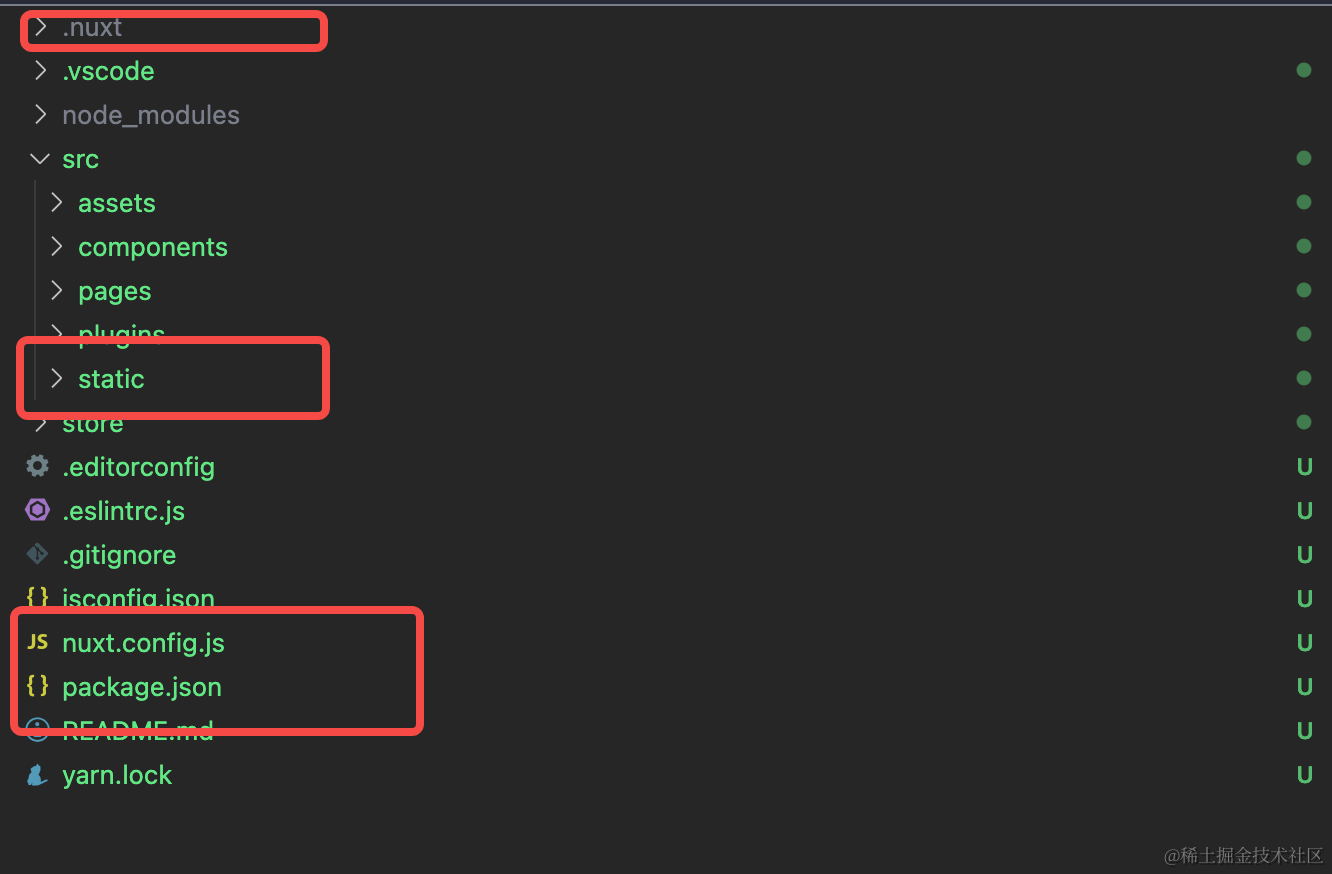 - 第一步:在nuxt2中nuxt.conifg.jd中使用srcDir: 'src/',把所有文件放在src下面,